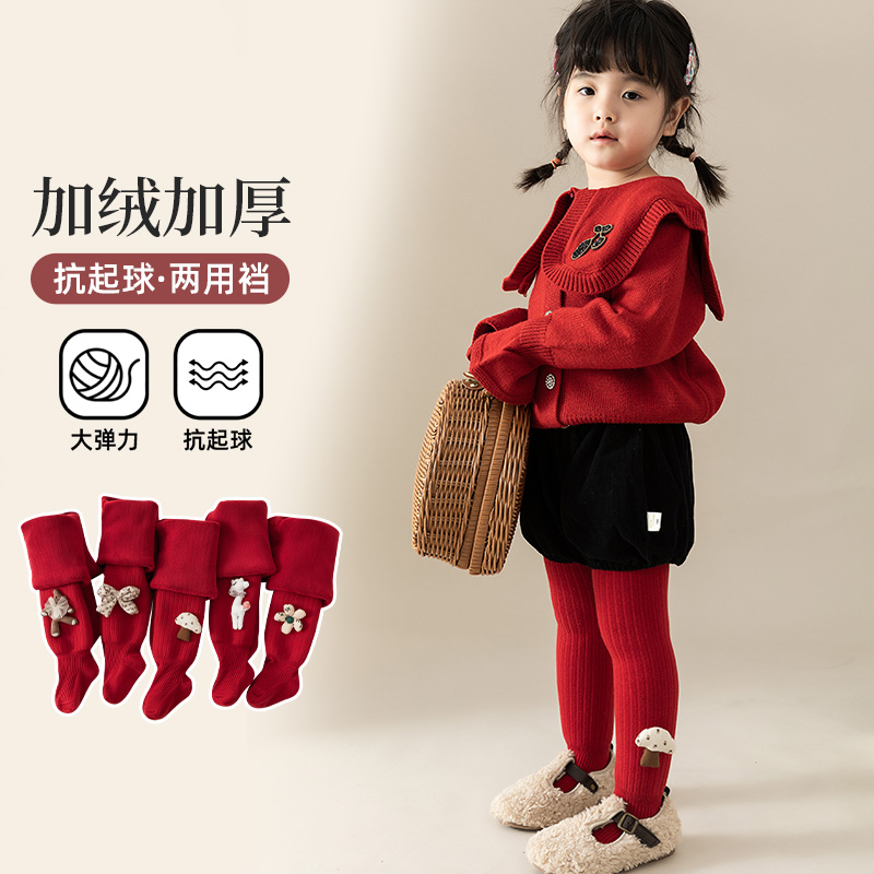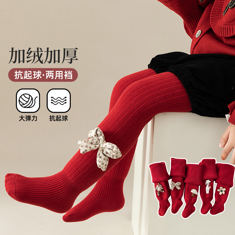 袜女童保暖生日袜 周岁红色宝宝大pp加厚连裤 婴儿加绒打底裤 秋冬季