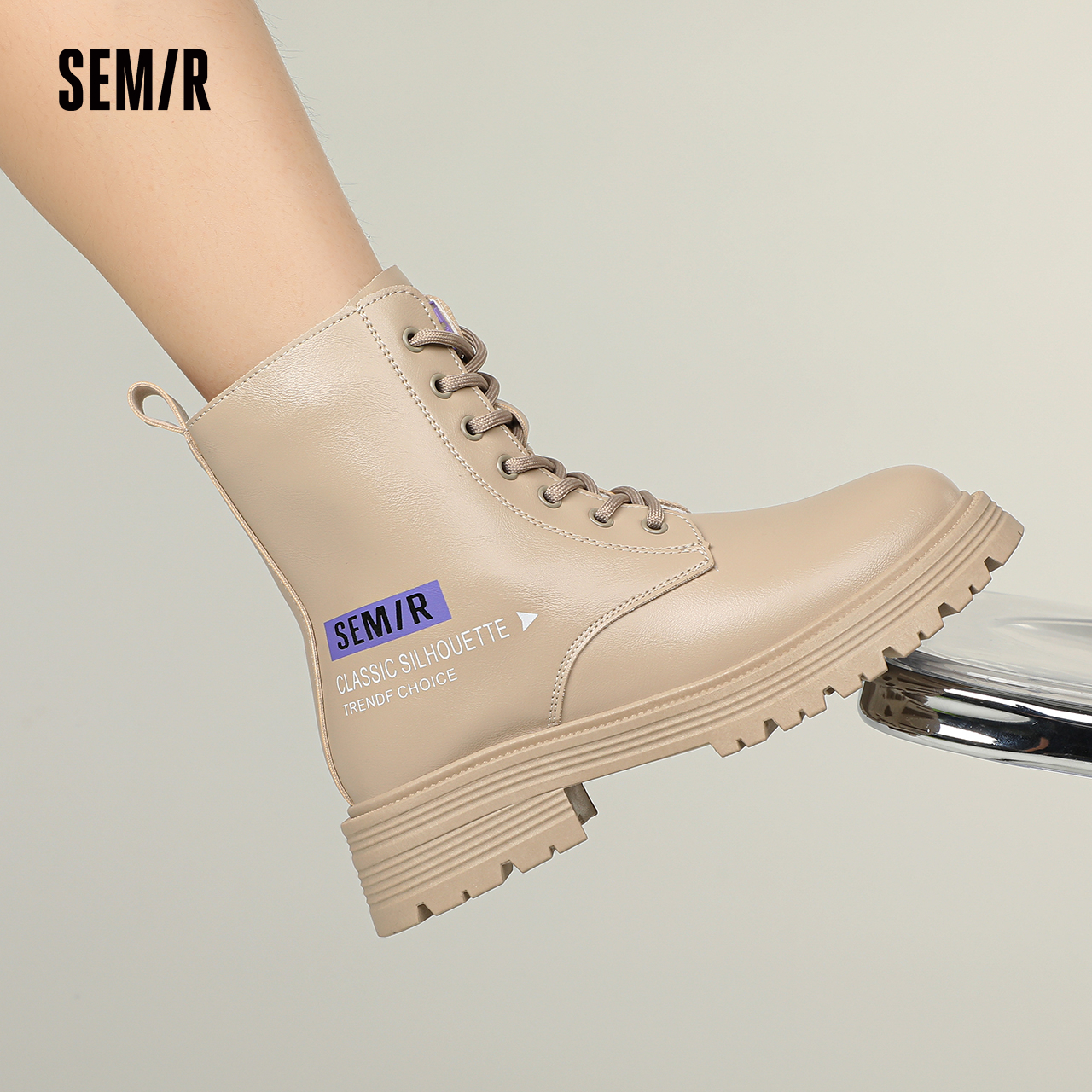 厚底配裙子英伦风炸街小短靴子 春秋季 Semir女鞋 马丁靴女2025新款