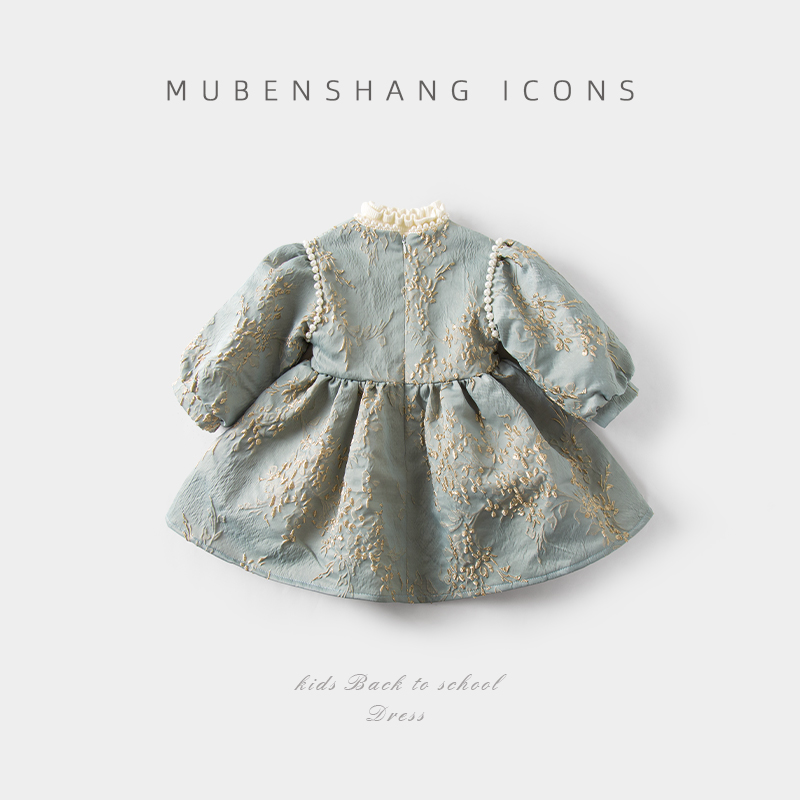 木耳花边宽松a字裙 复古灯笼袖 KEIKO 轻法风蓝色格纹连衣裙25秋季