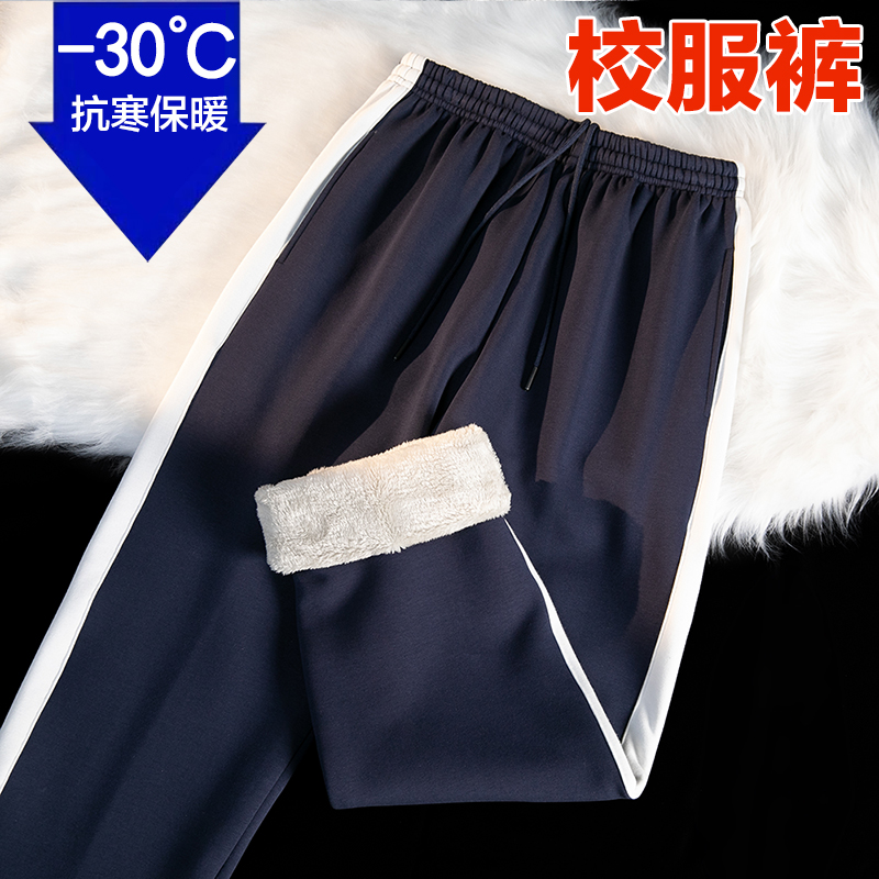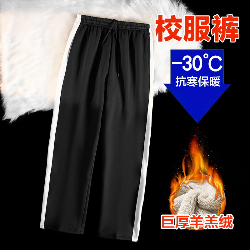 羊羔绒校服裤 子男女一条杠宽白条冬保暖加绒加厚中学生直筒运动裤