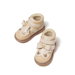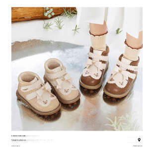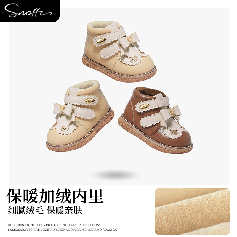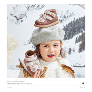 儿童加绒小公主皮靴宝宝棉鞋 斯纳菲女童短靴子雪地靴冬季 预售