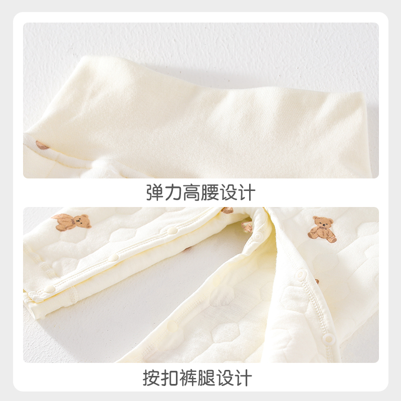 冬 高腰护肚宝宝分体内衣套装 婴儿衣服秋冬新款 夹棉保暖两件套秋装