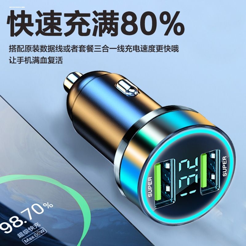 车载充电器手机超级快充头点烟器一拖二转换插头车充插座汽车接口
