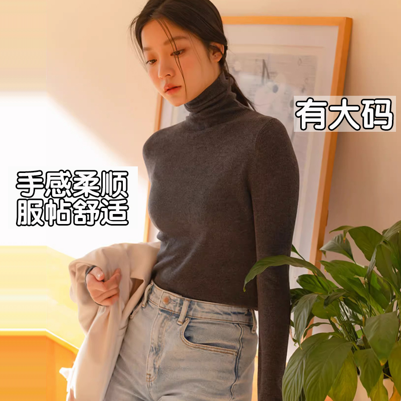 秋冬羊毛黑色内搭修身 2025新款 毛衣上衣 女半高领打底衫 猫人针织衫