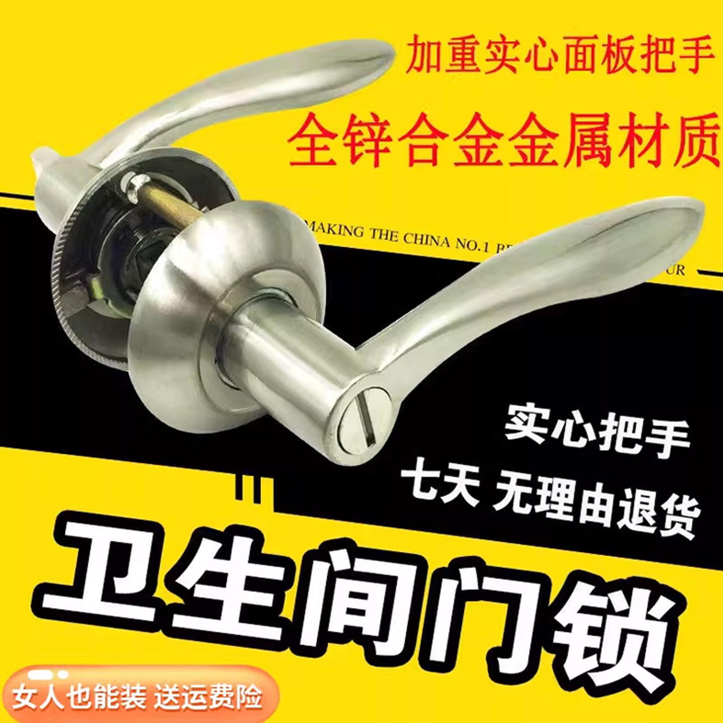 卫生间单舌门锁厕所无钥匙三杆锁铝合金门把手执手锁洗水间浴室锁