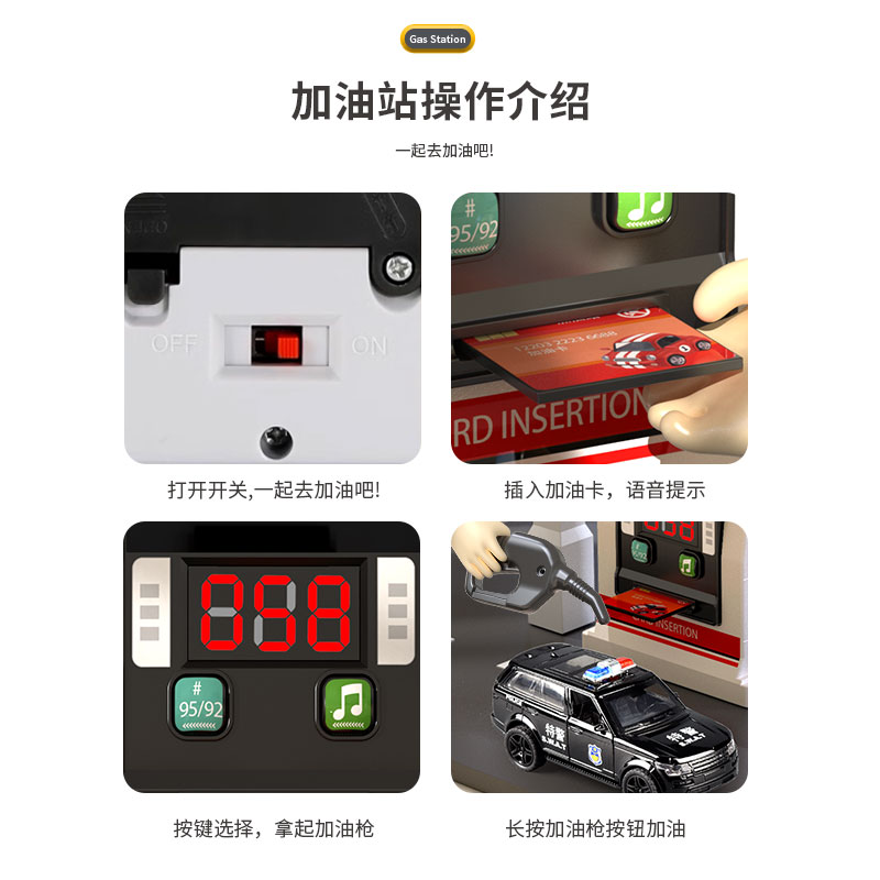 儿童加油站玩具模型仿真小汽车男孩3岁6宝宝益智过家家玩具加油机