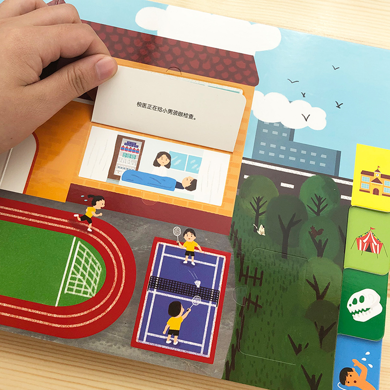 你好小镇撕不烂3d立体机关书一两岁儿童早教益智游戏书籍2 小红花忙碌小镇全景认知翻翻书 6岁宝宝启蒙认知绘本纸板书 新华文轩