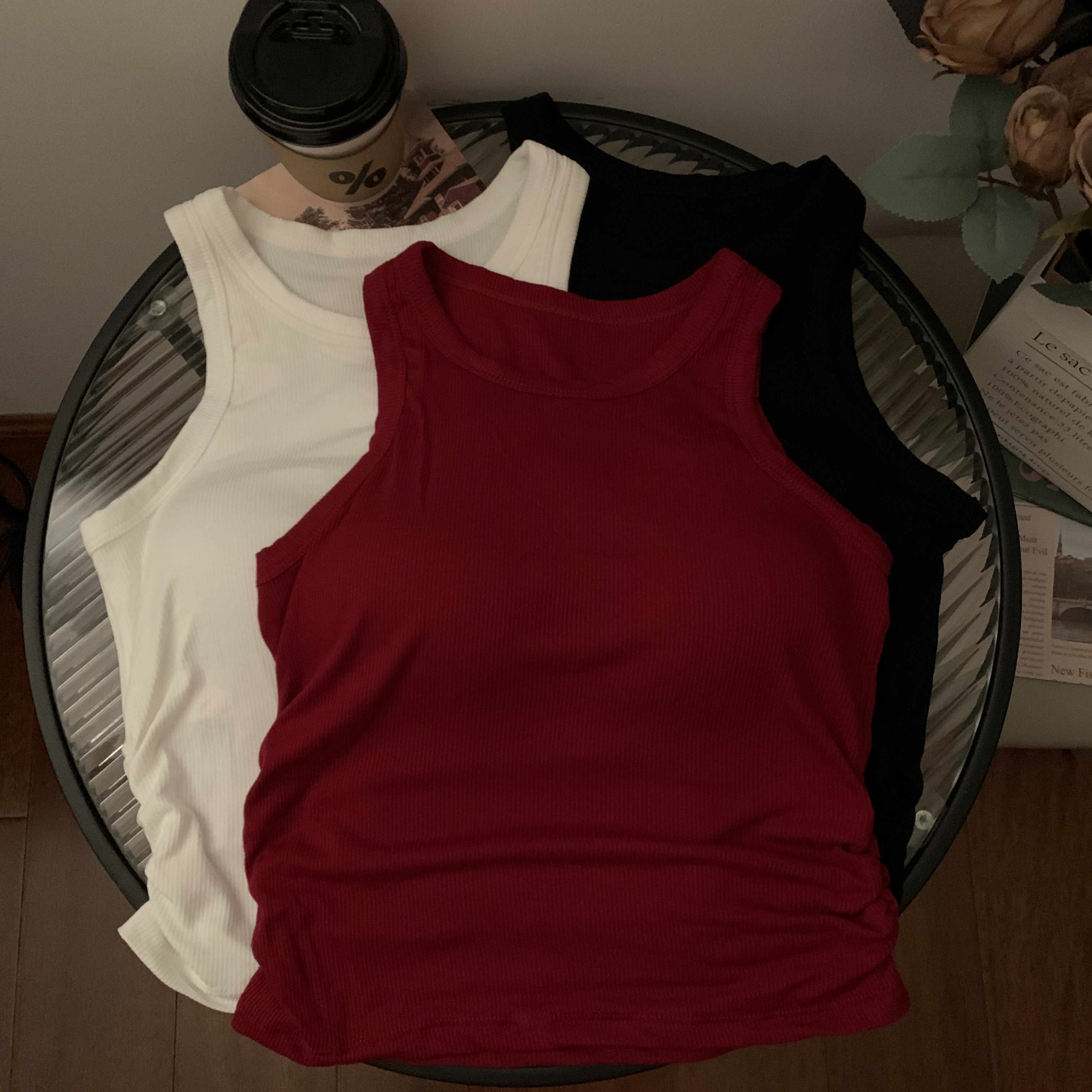 秋冬外穿带胸垫运动上衣潮 内搭打底衫 白色吊带背心女修身 显瘦短款