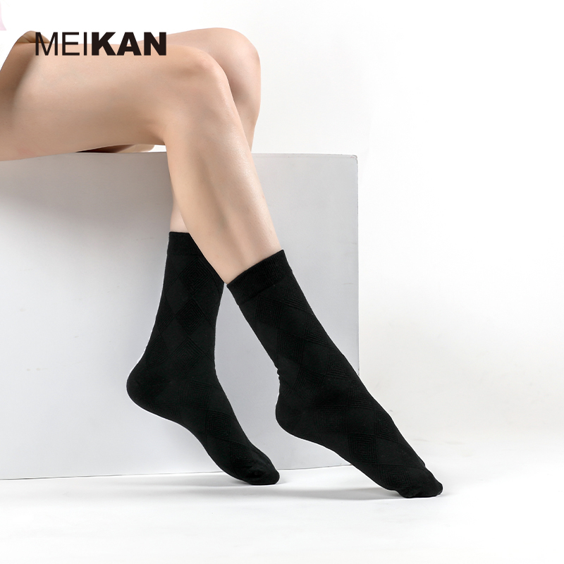 棉伙棉伴海藻袜舒适抗菌防臭男女商务运动纯色裸感中筒袜