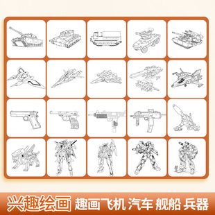 趣画坦克机甲战舰枪械描摹临摹本线稿控笔线条铠甲勇士机甲战士战车飞船临摹画本画册涂色儿童成人绘画美术基础入门漫画动漫手绘