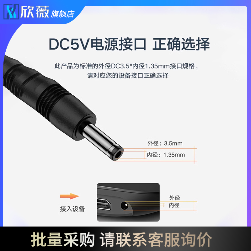 USB转DC3.5 2.1mm充电线圆孔圆头台灯音响小风扇露娜洁面仪通用usb转dc电源数据线 1.35mm供电线5V电源线5.5
