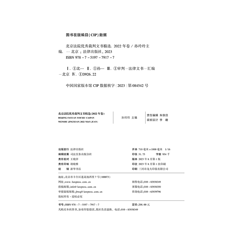 2022年卷 北京法院优秀裁判文书精选 孙玲玲 优秀裁判文书示范 社9787519779177 正版 法律出版 2023新书