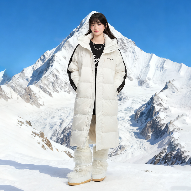 韩国大口袋连帽长款 宽松百搭加厚白鸭绒外套 羽绒服女冬2025年新款