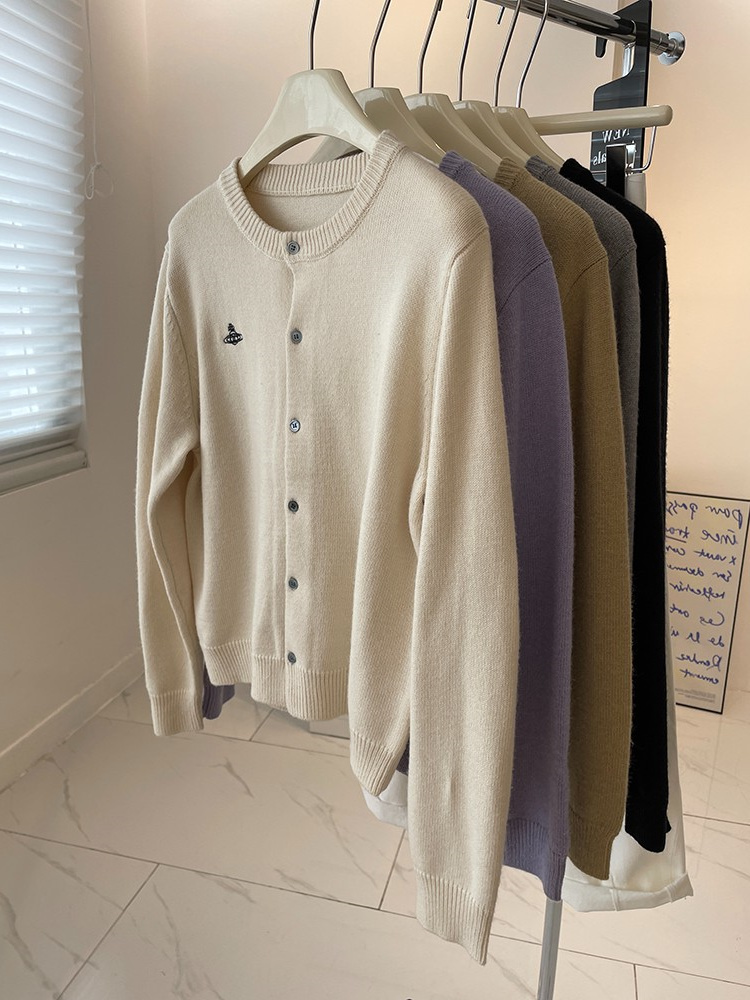 纯棉春秋外套纯色百搭圆领毛衣针织衫 宽松针织开衫 潮 女装 2025新款