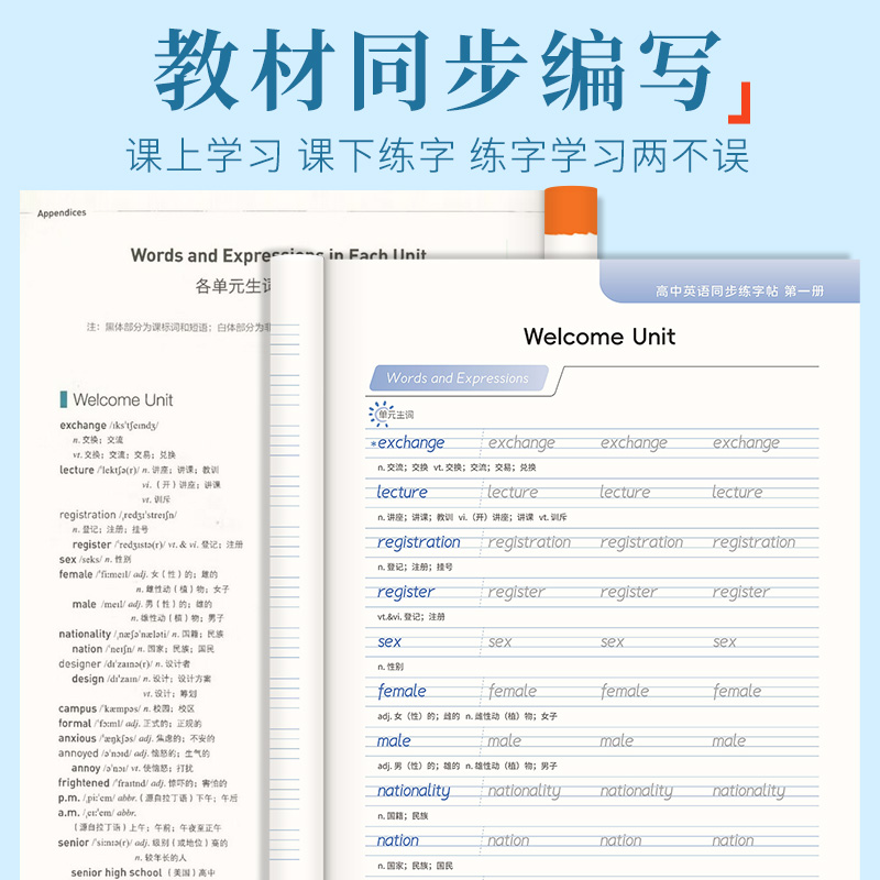 衡水体英语字帖高中必修一专用练字帖2025新版 同步英文单词词汇高考满分作文优秀范文练习本描红无临摹纸 高中生高一高二高三人教版