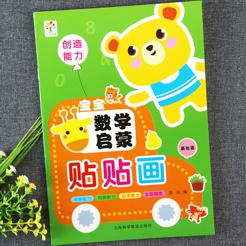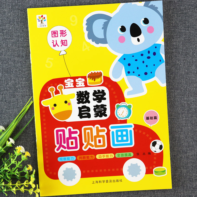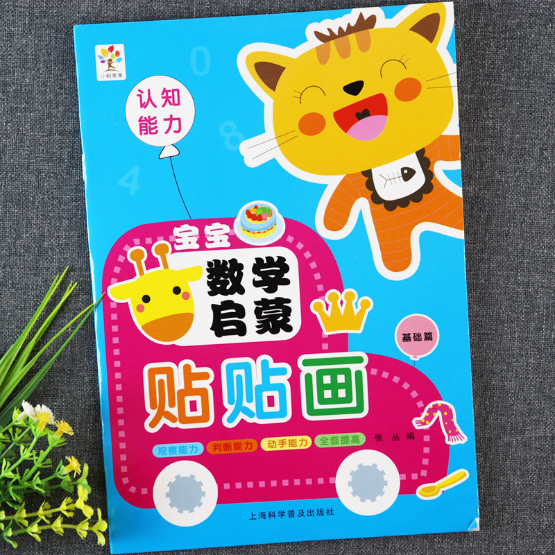 宝宝数学启蒙贴贴画图形认知创造辨别能力小树果果新蒙氏数学贴纸书大全幼儿数学左右脑开发动手动脑思维训练游戏书 全4册