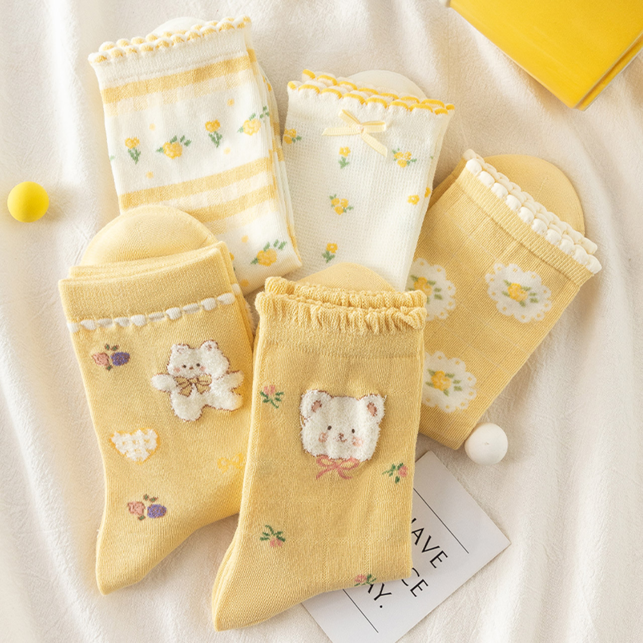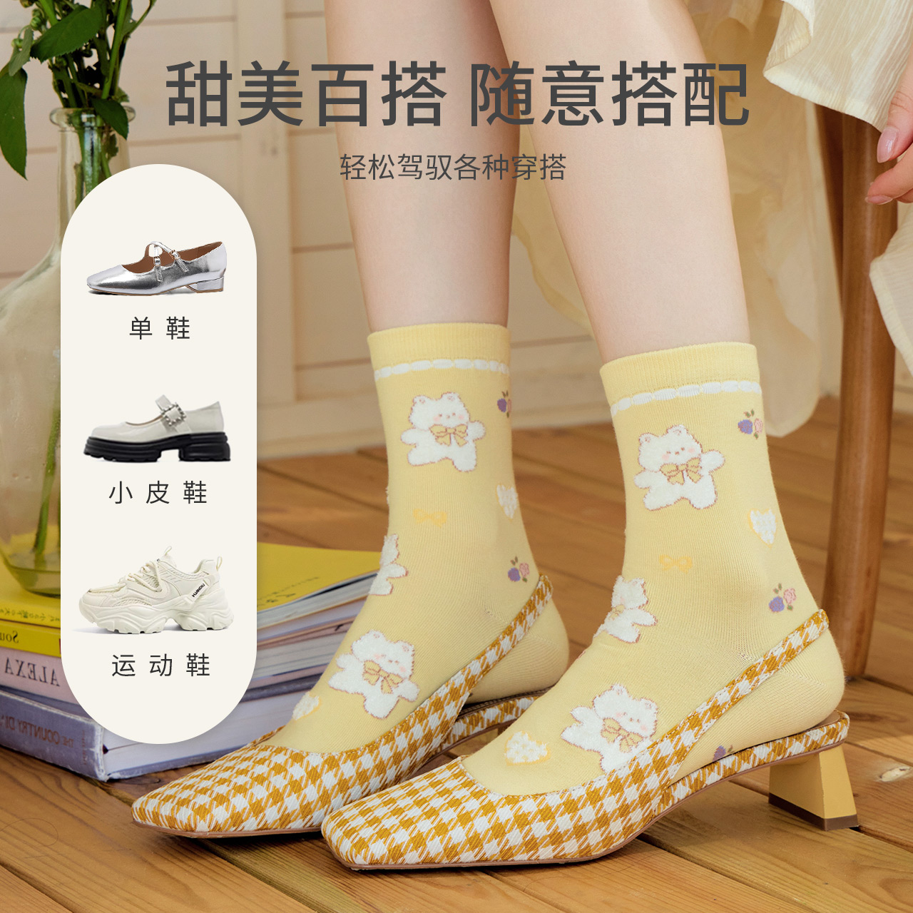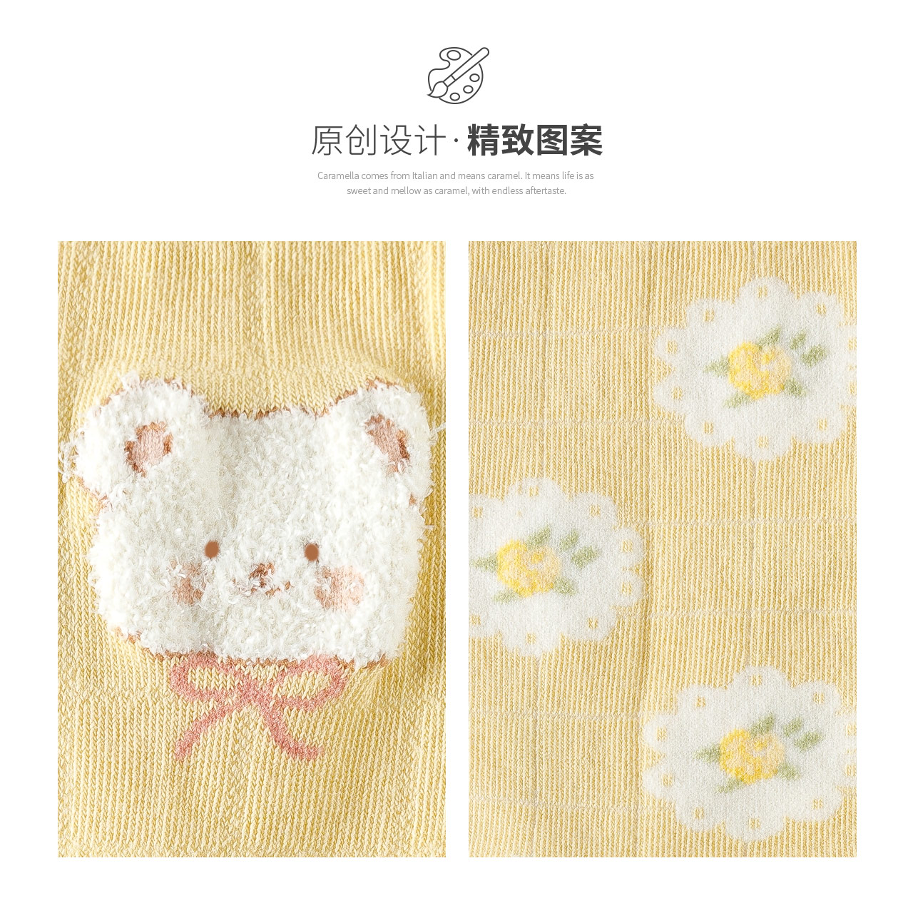 秋冬2025新款 卡通黄色少女长袜花边中筒袜棉女袜 袜子女士可爱女款