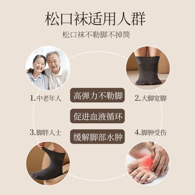 松口袜子男春秋季 高筒老年人脚肿不勒脚长袜 中筒袜棉袜防臭加大码