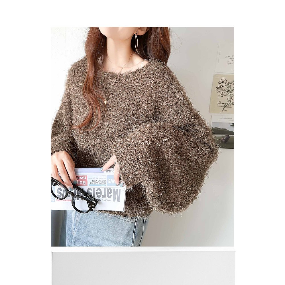 蓝色翻领毛衣 新款 阔色慵懒风灰色针织开衫 外套上衣女2025秋冬季