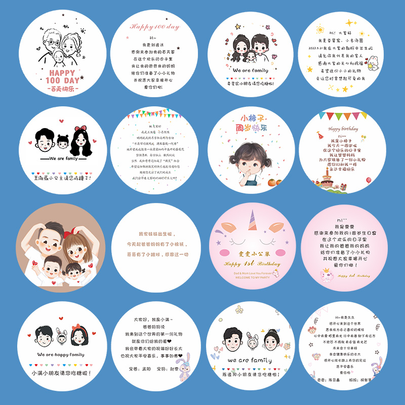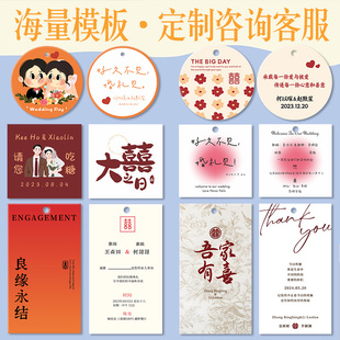 伴手礼吊牌定制婚礼喜糖盒吊卡打印儿童周岁满月小卡片印刷结婚果糖包装 感谢挂签生日百日宴礼盒圆形挂牌定做