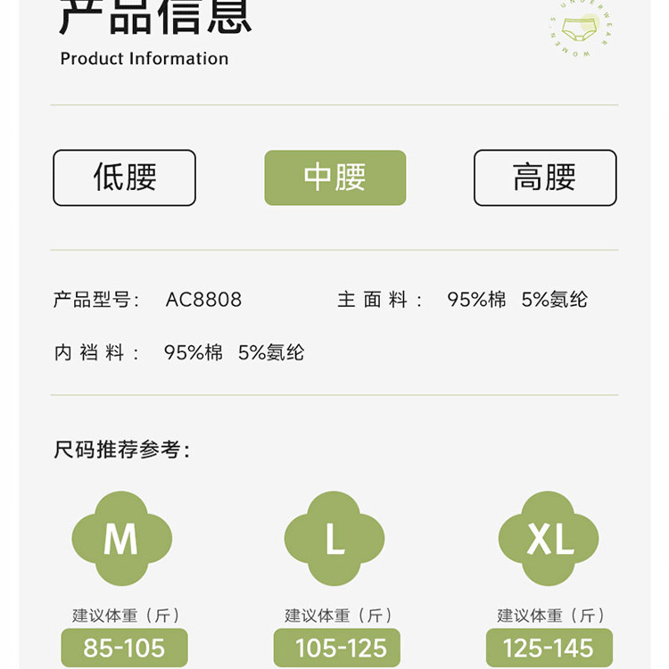 夏季 无痕青年短裤 纯棉三角7A级抗菌中腰大码 弹力 feeling女内裤