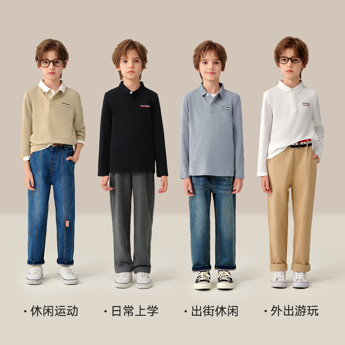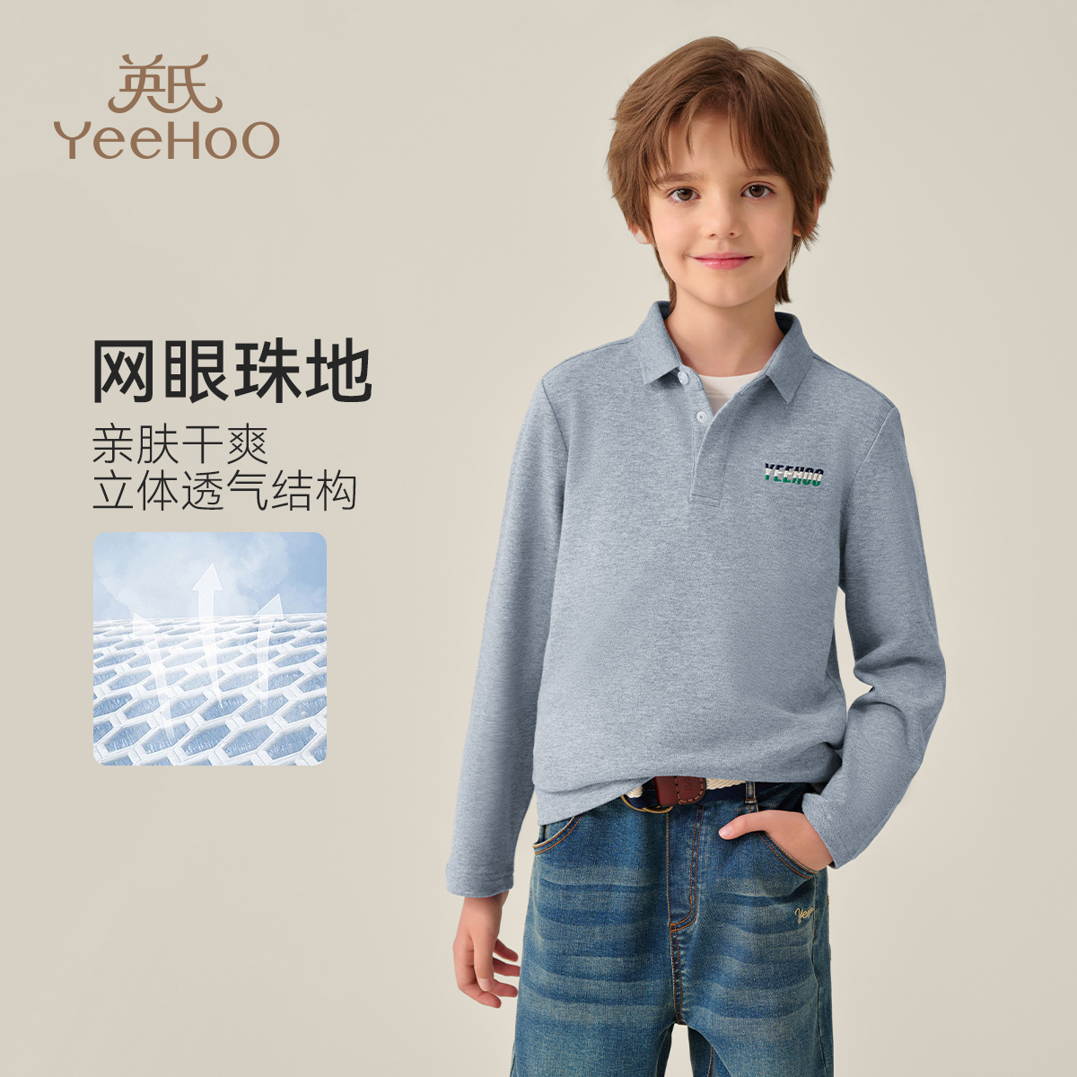 儿童中大童运动童装 2025春夏新款 上衣 polo衫 英氏乐尚男童t恤长袖