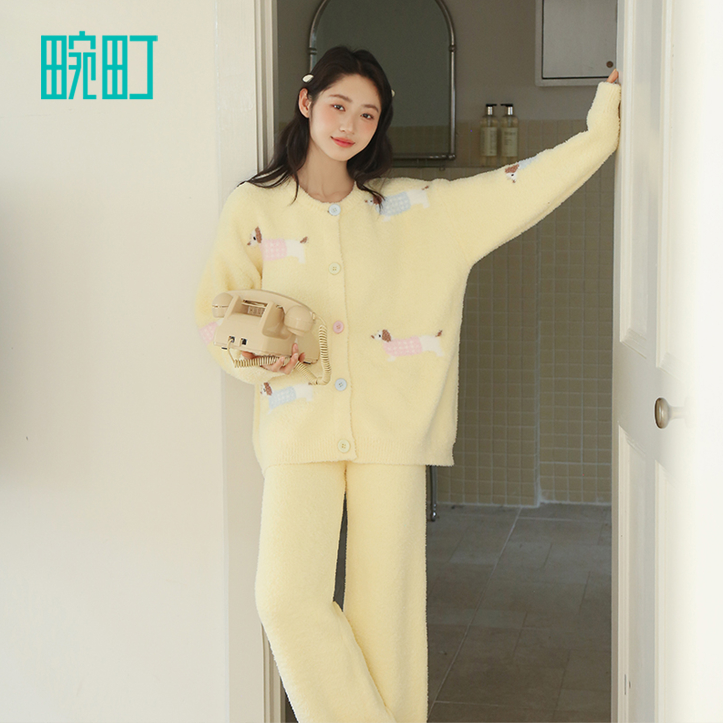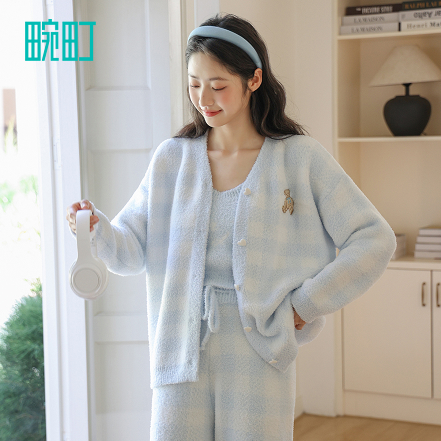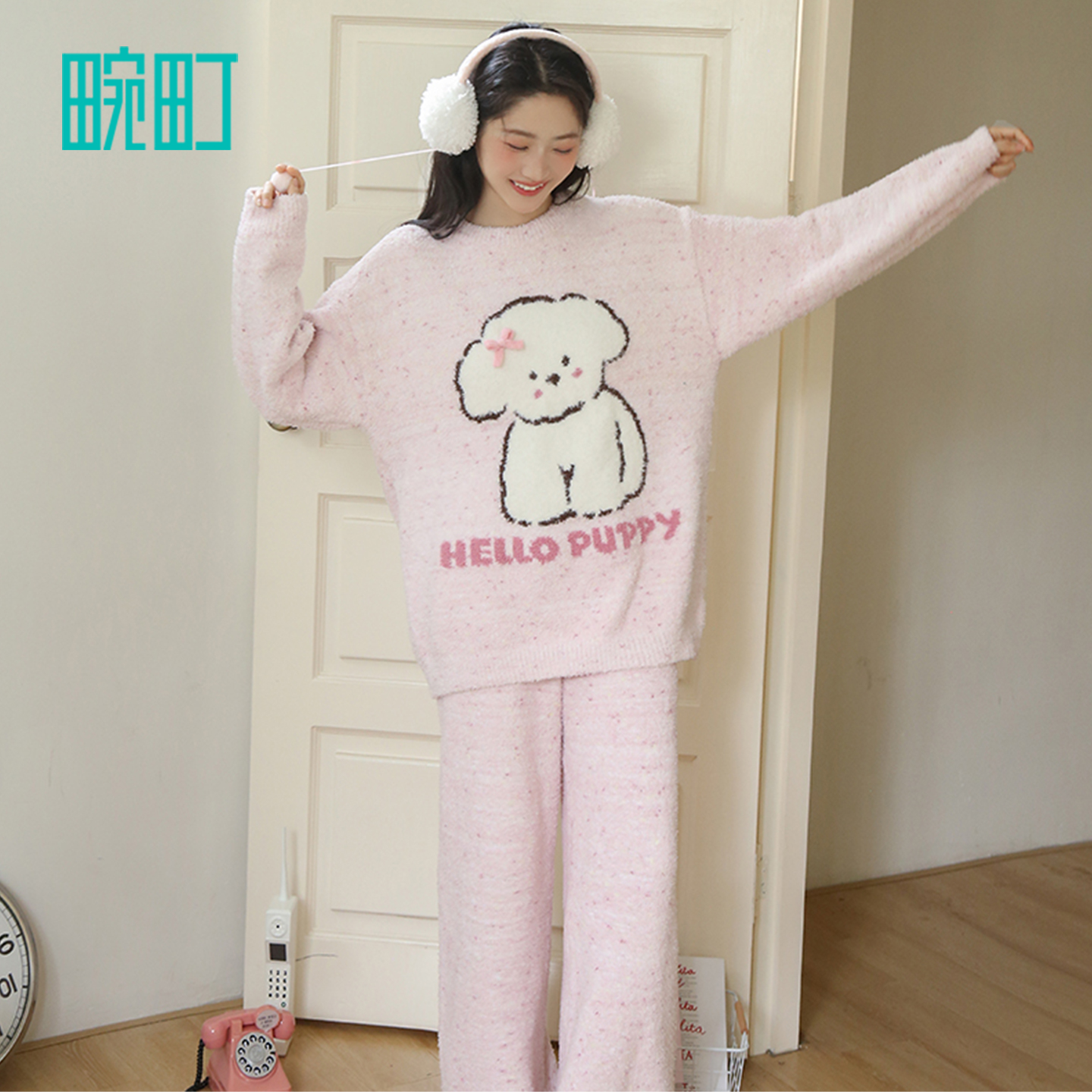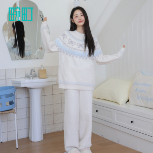 睡衣套装 长裤 加绒加厚保暖半边绒可爱卡通长袖 畹町家居服女秋冬季
