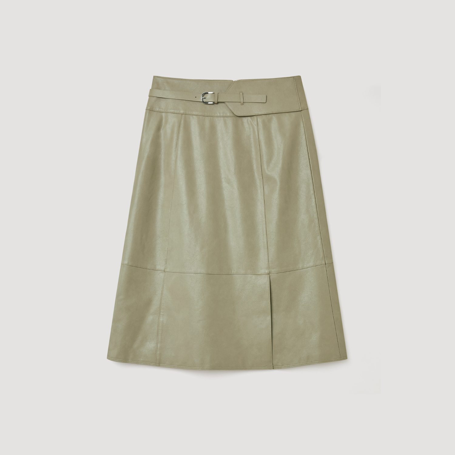 饰皮质半身裙 左前侧开衩金属D字扣装 OVVOutlet2024秋冬新款 女装