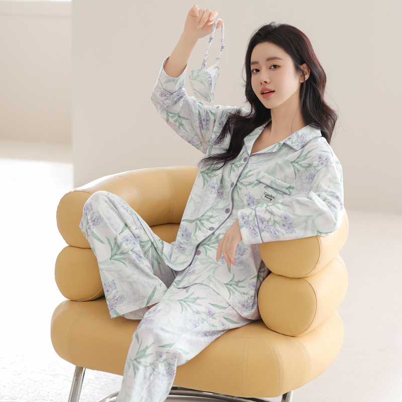 长裤 纯棉长袖 秋季 奢华3件套装 家居服 芬腾睡衣女士春秋款 大码 新款