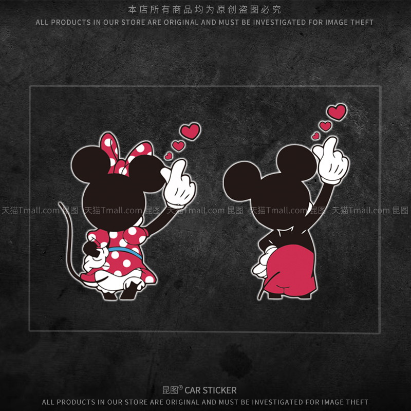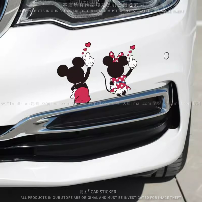 米奇米妮车贴卡通个性 饰电动车行李机箱贴防水 汽车身划痕遮挡改装