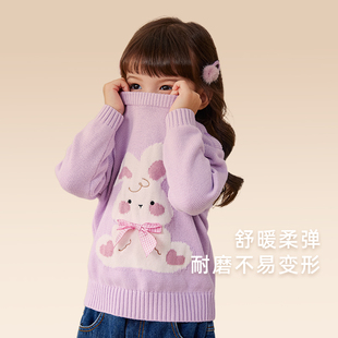 可爱上衣 宽松2025新款 森马针织开衫 女冬半高领小狗提花牛角扣毛衫