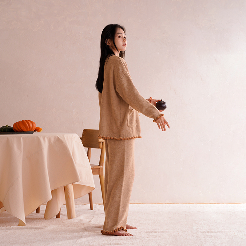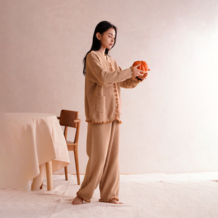 家居服睡衣套装 朵朵可可秋冬保暖亲肤半边绒简约女长袖 预售