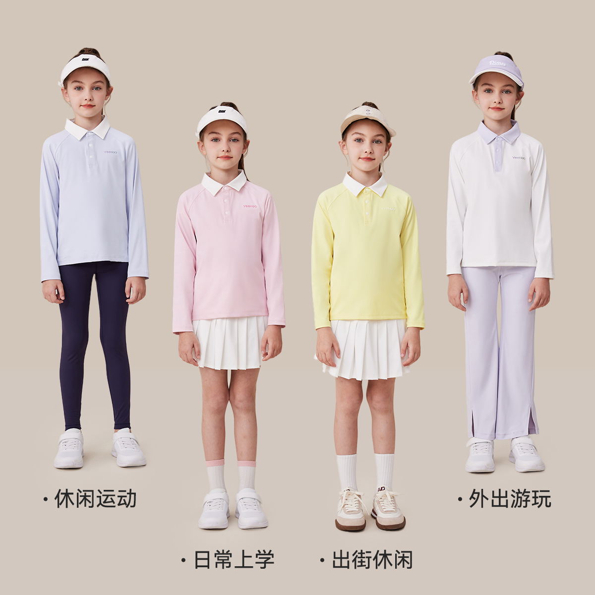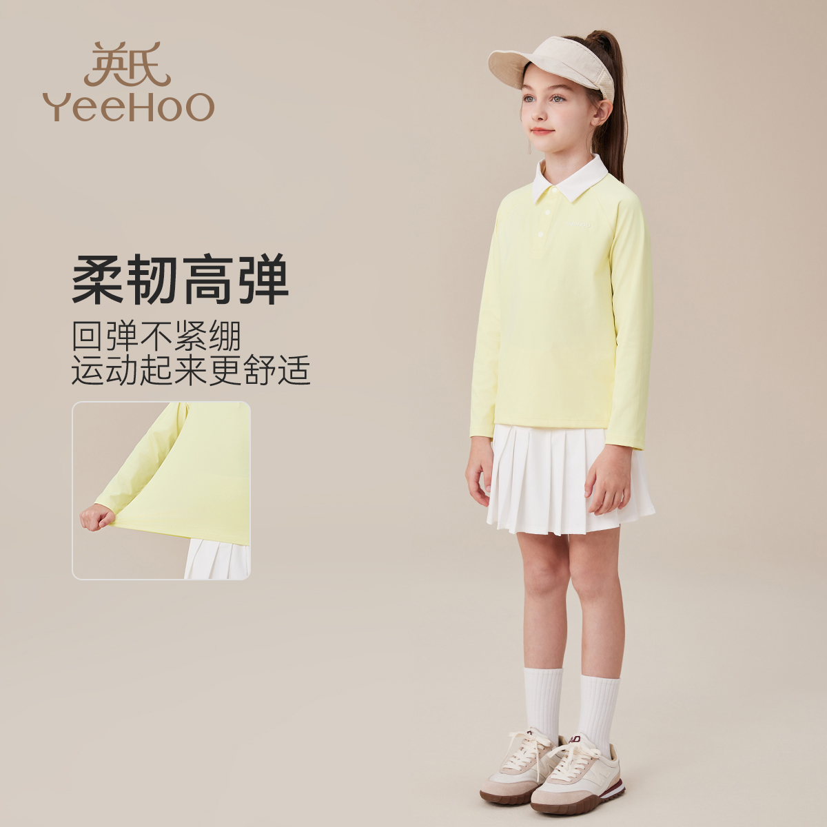 T恤打底衫 女孩翻领长袖 纯色上衣 2025春秋新款 英氏女童运动polo衫