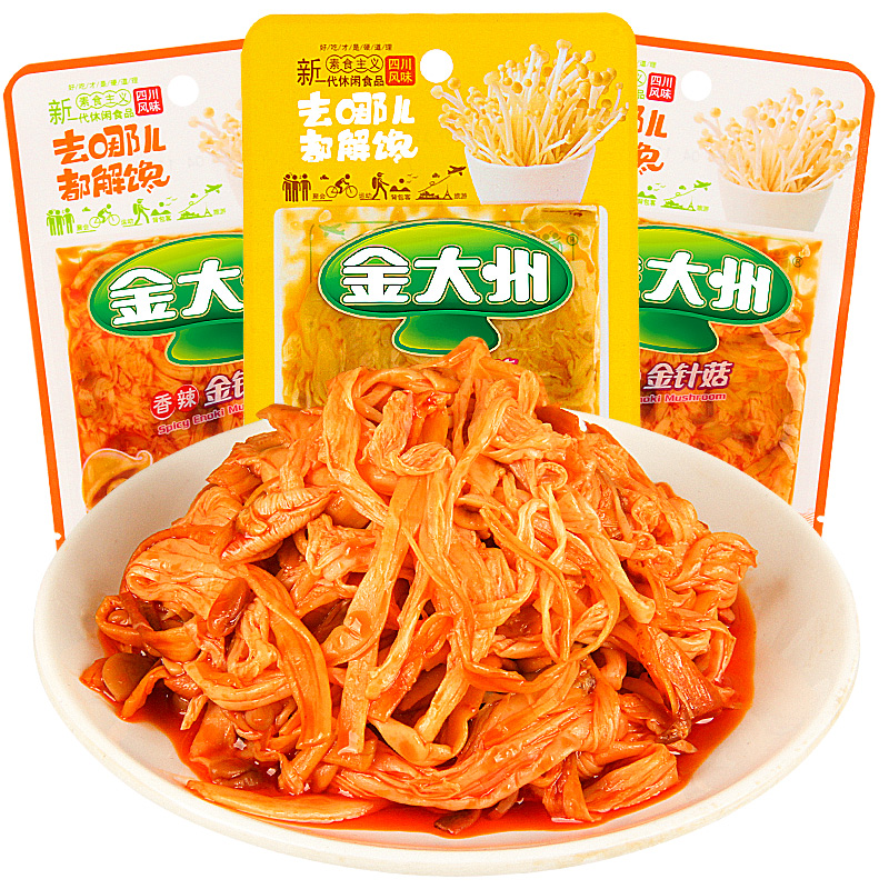 金大洲小包装 金针菇15g大袋香辣小零食开袋即食大包下饭菜辣条红