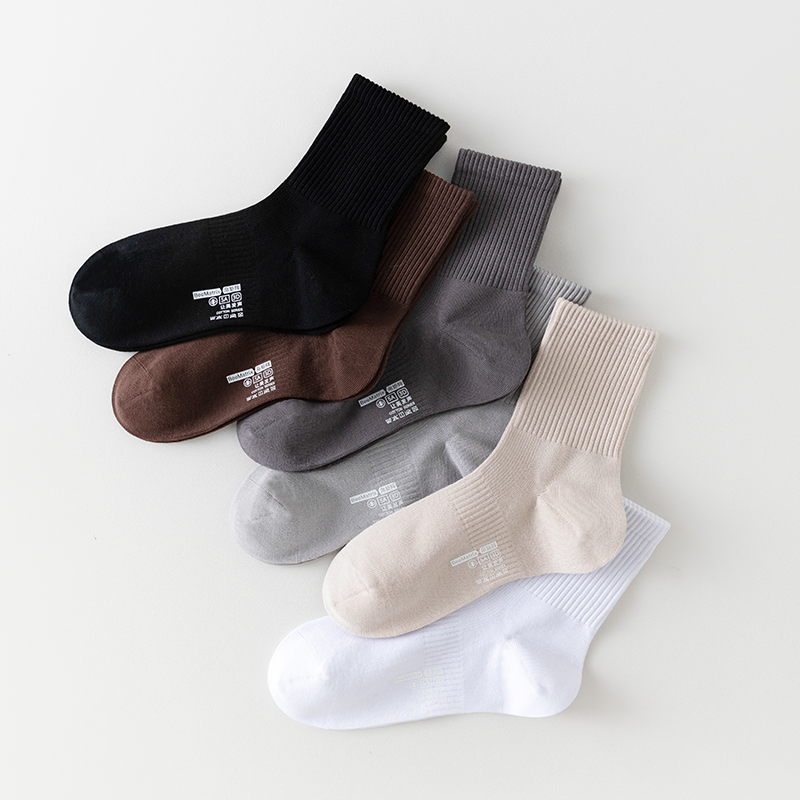 6双装 帛矩阵大后跟抑菌防臭舒适透气无骨棉袜男纯色百搭吸汗时尚