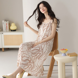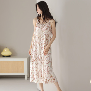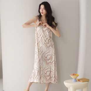 都市丽人凉感型带胸垫女士吊带睡裙中长款 休闲宽松家居睡衣裙夏季