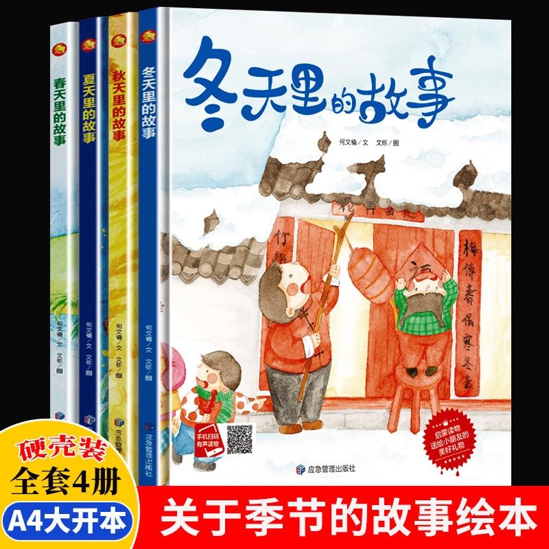 硬壳阅读幼儿园大班中小班儿童来了认知有声季 美丽 故事故事书硬皮精装 全套4册春夏秋冬绘本关于春天夏天秋天冬天里 节 四季