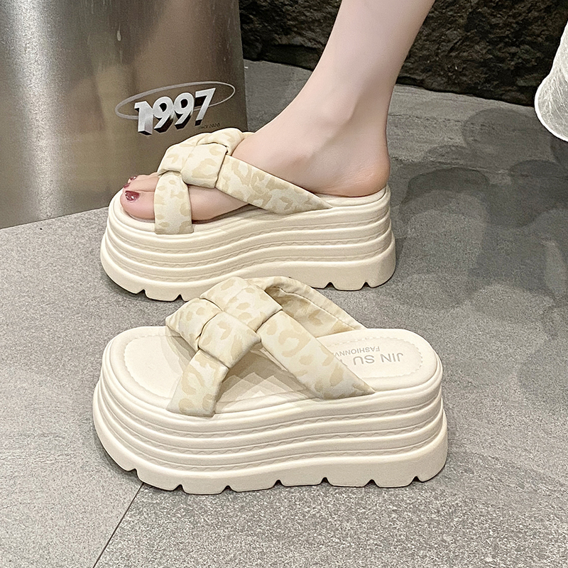 公主风外穿厚底增高洋气凉拖女2025夏新款 防滑软底沙滩一字拖凉鞋