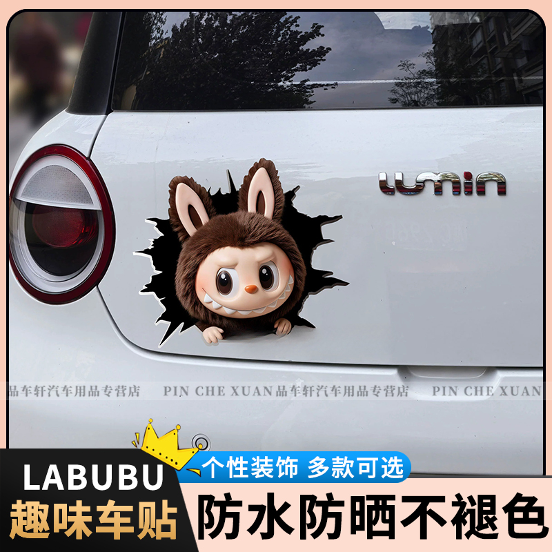 拉布布Zimomo破洞可爱卡通汽车电动车装 饰贴纸划痕遮挡后窗玻璃贴