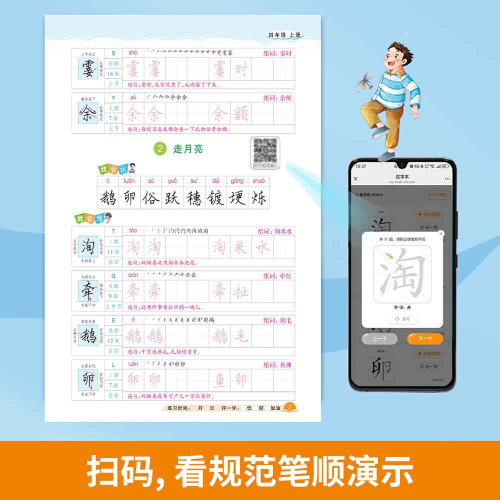 四年级上册练字帖2025新版 小学生语文同步字帖4年级硬笔临摹本笔画笔顺儿童描红写字课课练同步训练课堂练习阅读书写书法 人教版