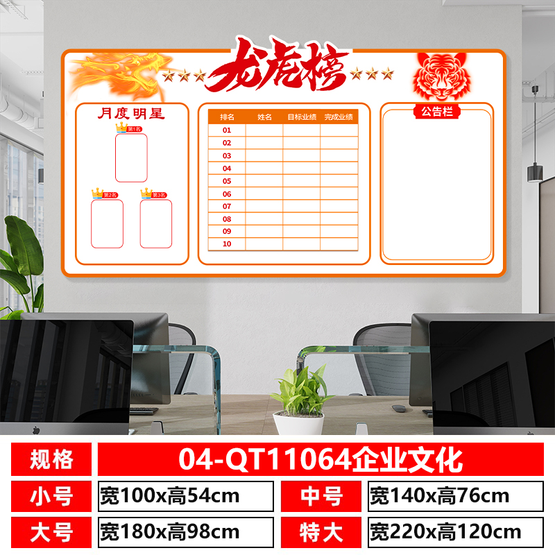 磁吸业绩展示板龙虎榜看板墙贴定制员工销售业绩pk榜排行榜荣誉墙