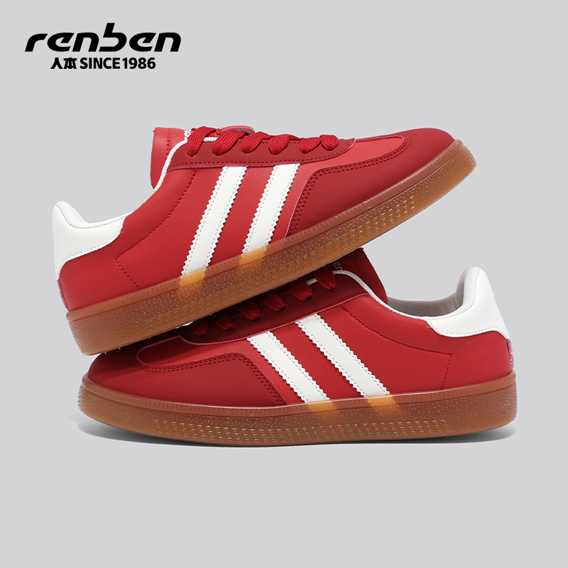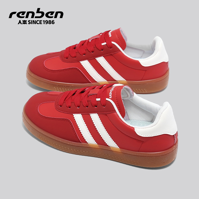 女2025新款 软底女鞋 春秋夏季 子百搭休闲运动板鞋 红色鞋 人本德训鞋
