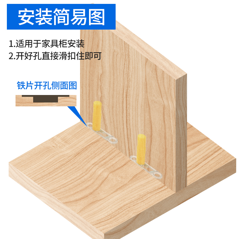弹力隐形连接件衣柜板式 家具连接件隐形无孔工艺二合一连接件铁质