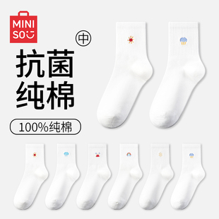 透气防臭四季 爆款 短袜 春秋纯棉中筒袜2025新款 名创优品袜子女款