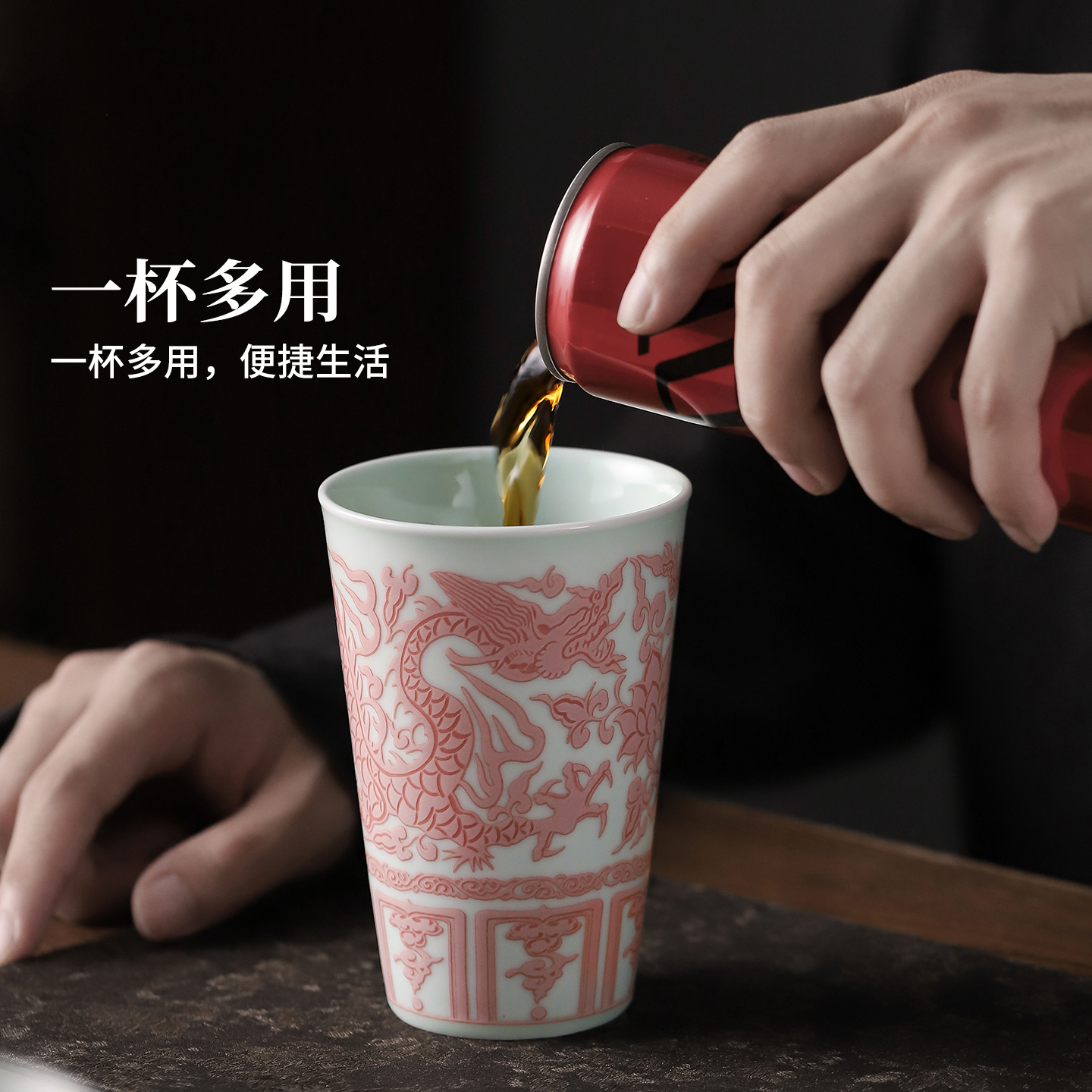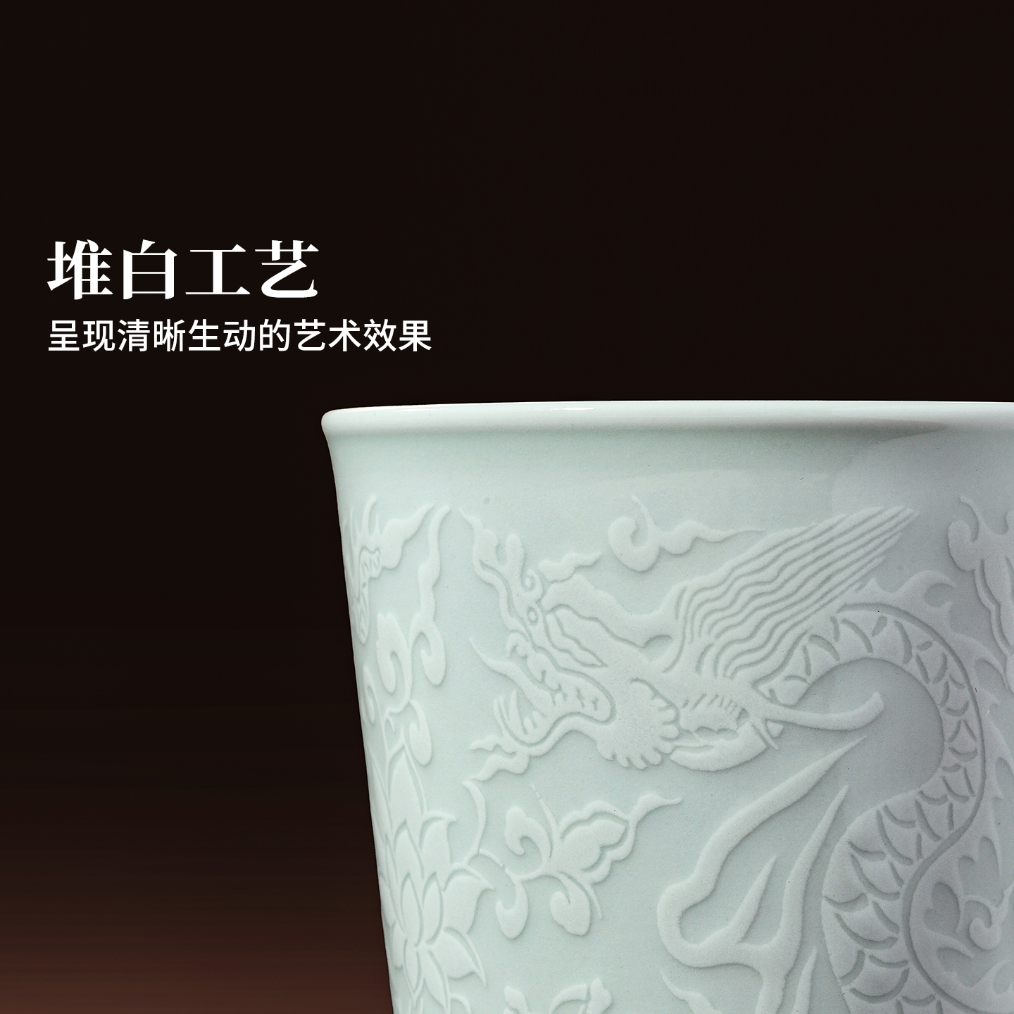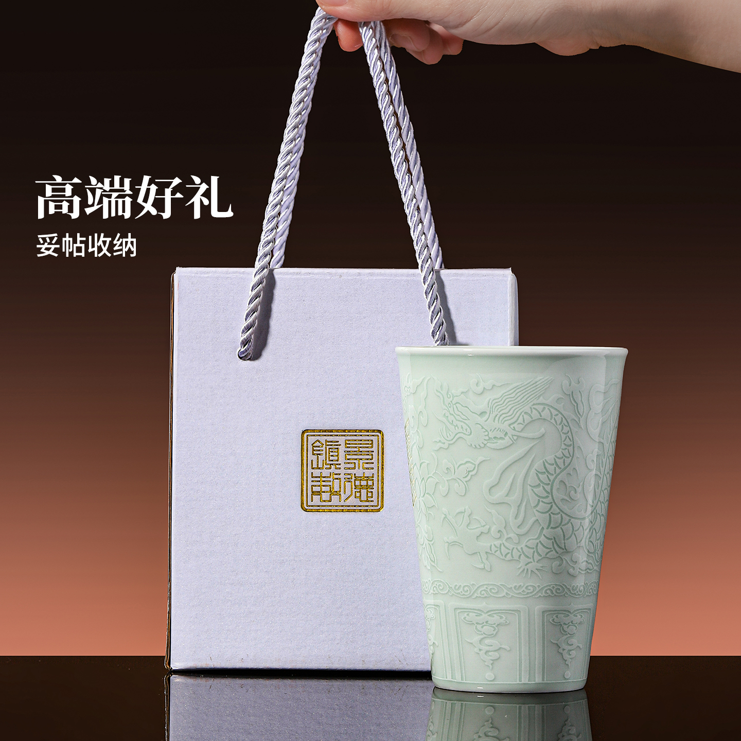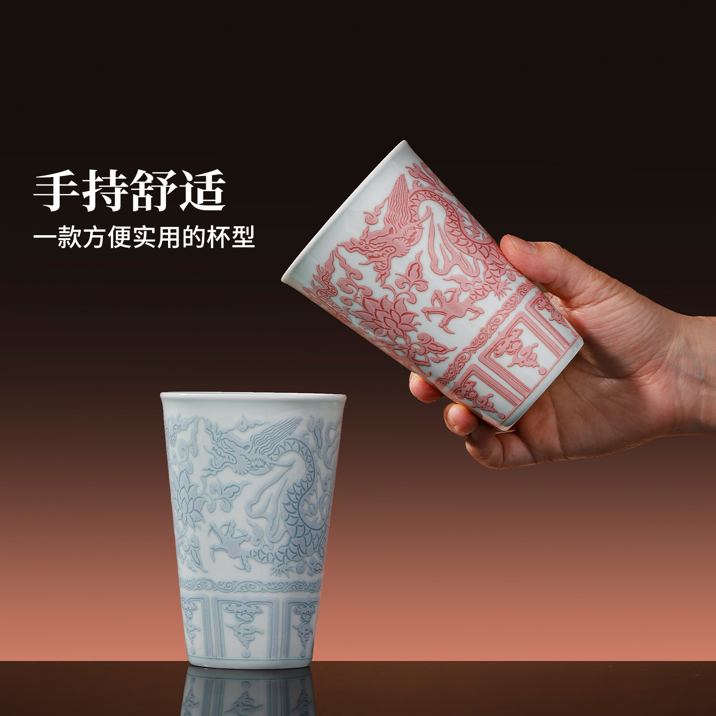 景德镇官方陶瓷杯子家用2025新款 堆白工艺可乐杯大容量高端轻奢