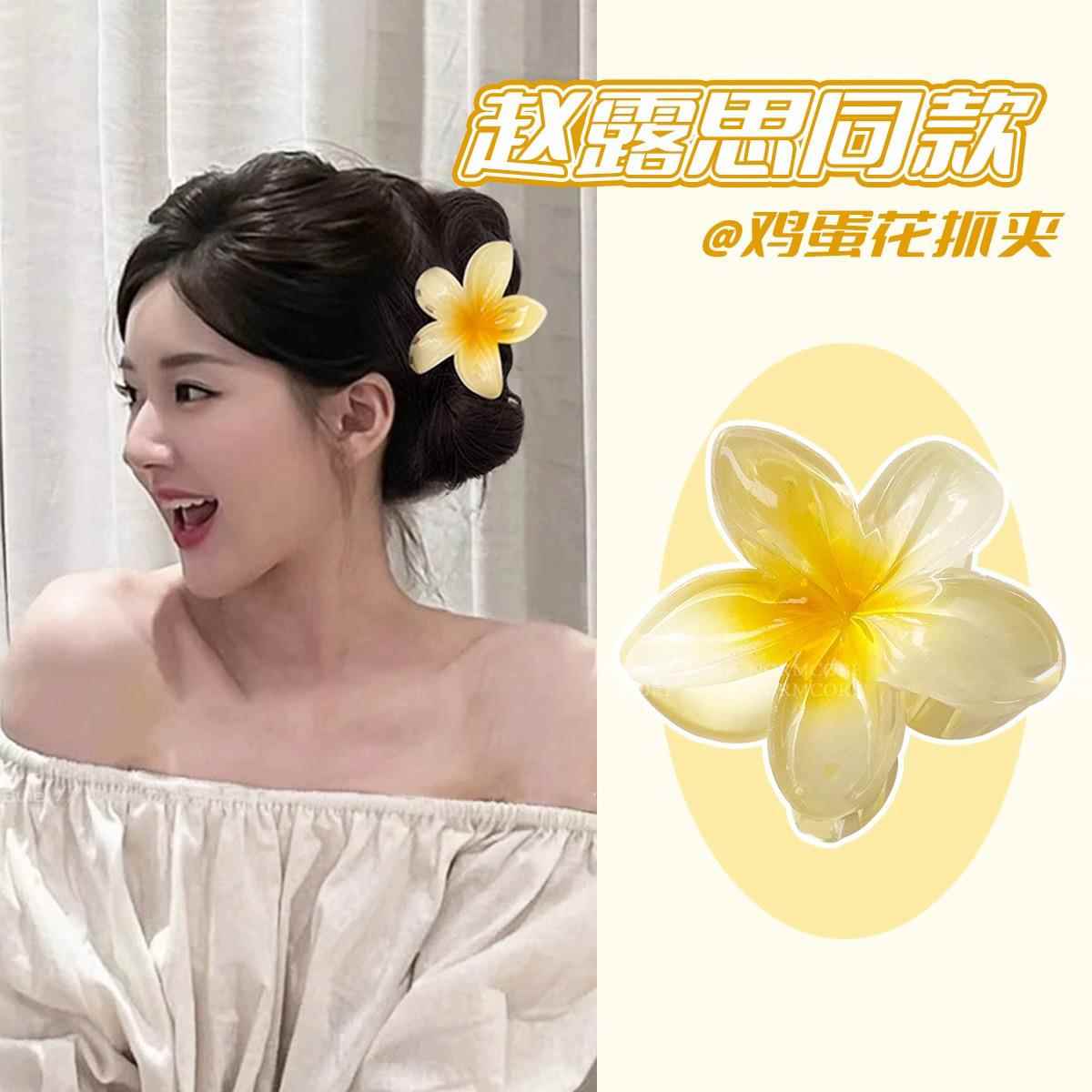 鸡蛋花大号头发抓夹发夹子头饰发卡子女爪夹鲨鱼夹海边拍照摄影用