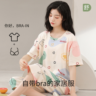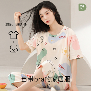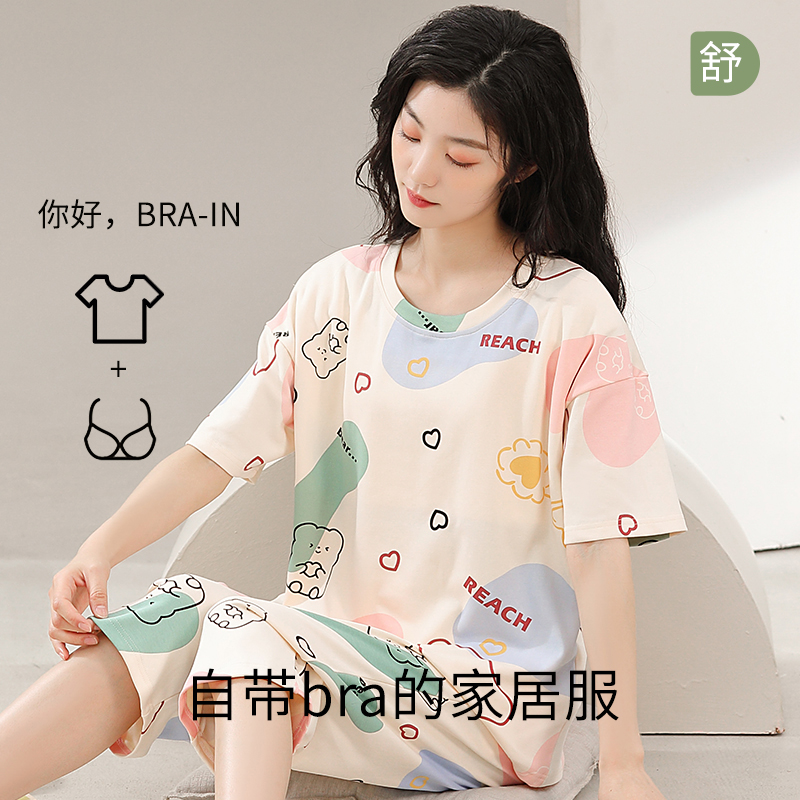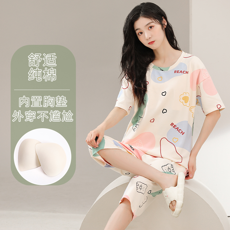 七分裤 纯棉短袖 全棉夏天中裤 2025夏季 家居服 雅鹿睡衣女款 新款 夏季