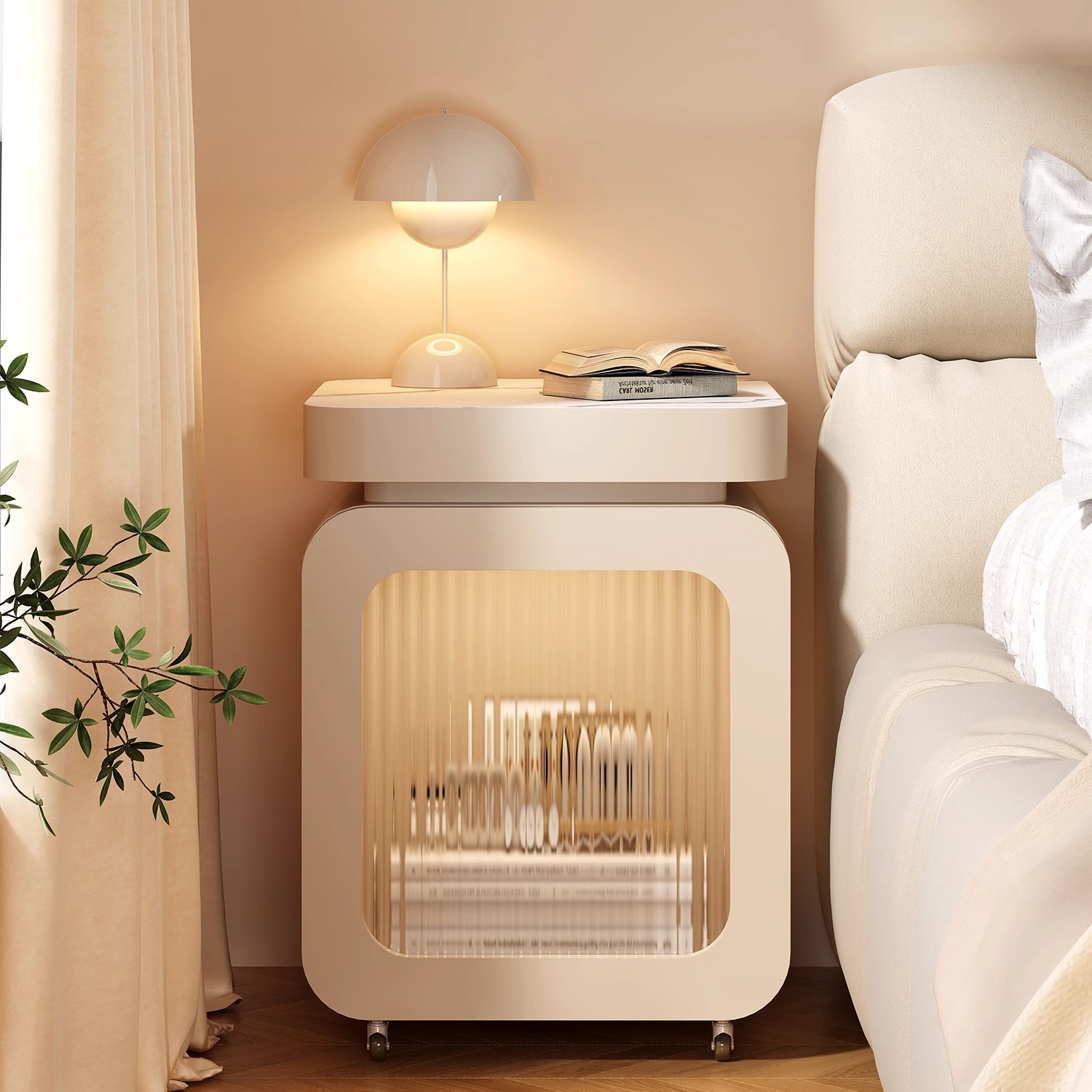 奶油风床头柜家用卧室置物架2025爆款 可爱创意收纳柜小型圆形柜子