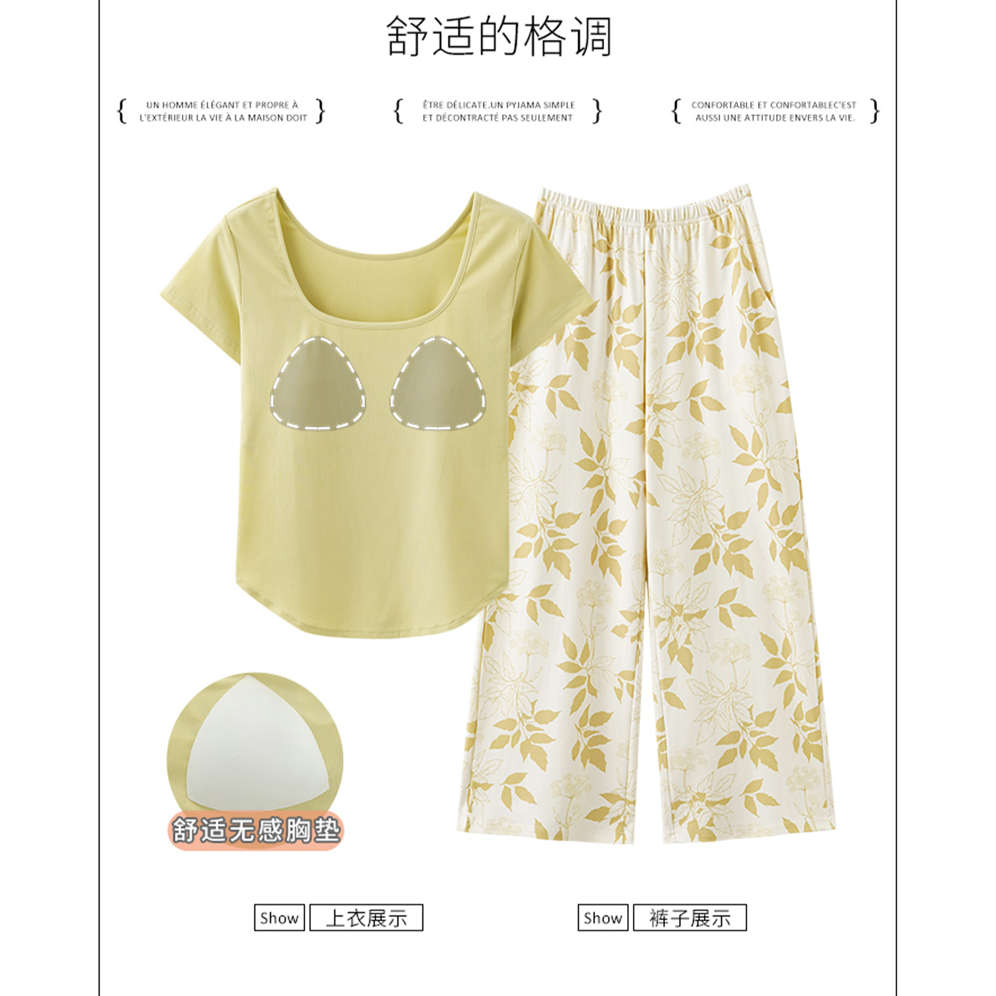 带胸垫防凸点全棉家居服套装 秋冬款 长袖 纯棉秋季 睡衣女士2025新款