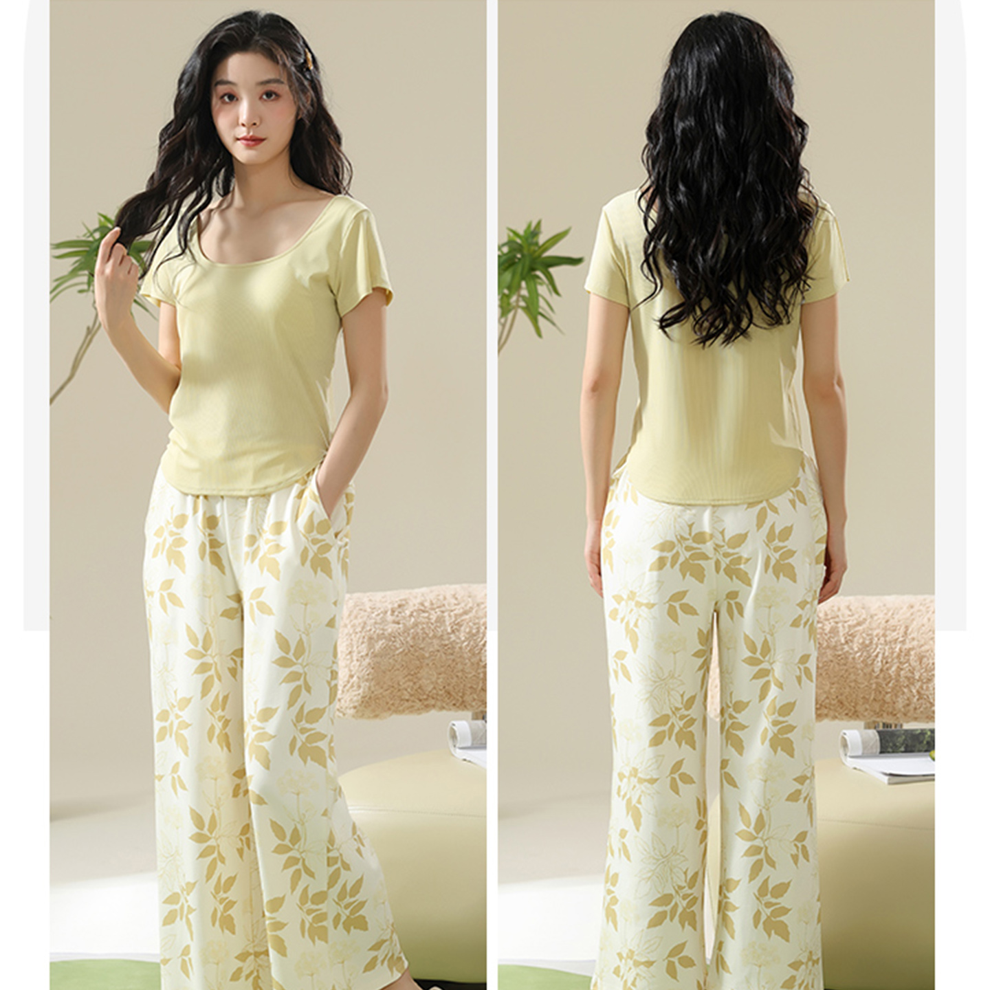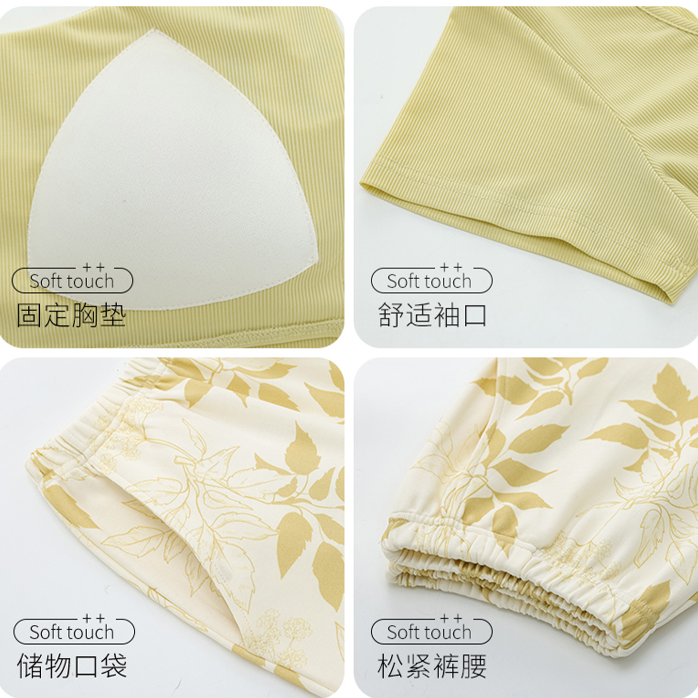 长袖 简约舒适家居服套装 长裤 夏季 可外穿 2025新款 纯棉睡衣女春秋季